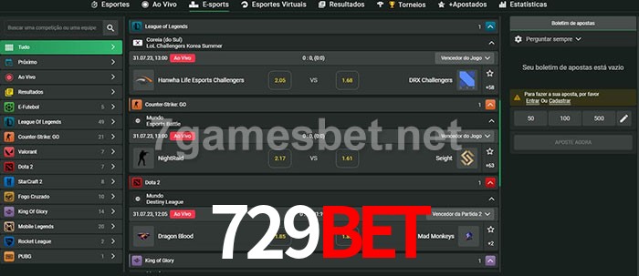 O 729bet oferece uma grande seleção de opções de apostas em e-sports com probabilidades competitivas